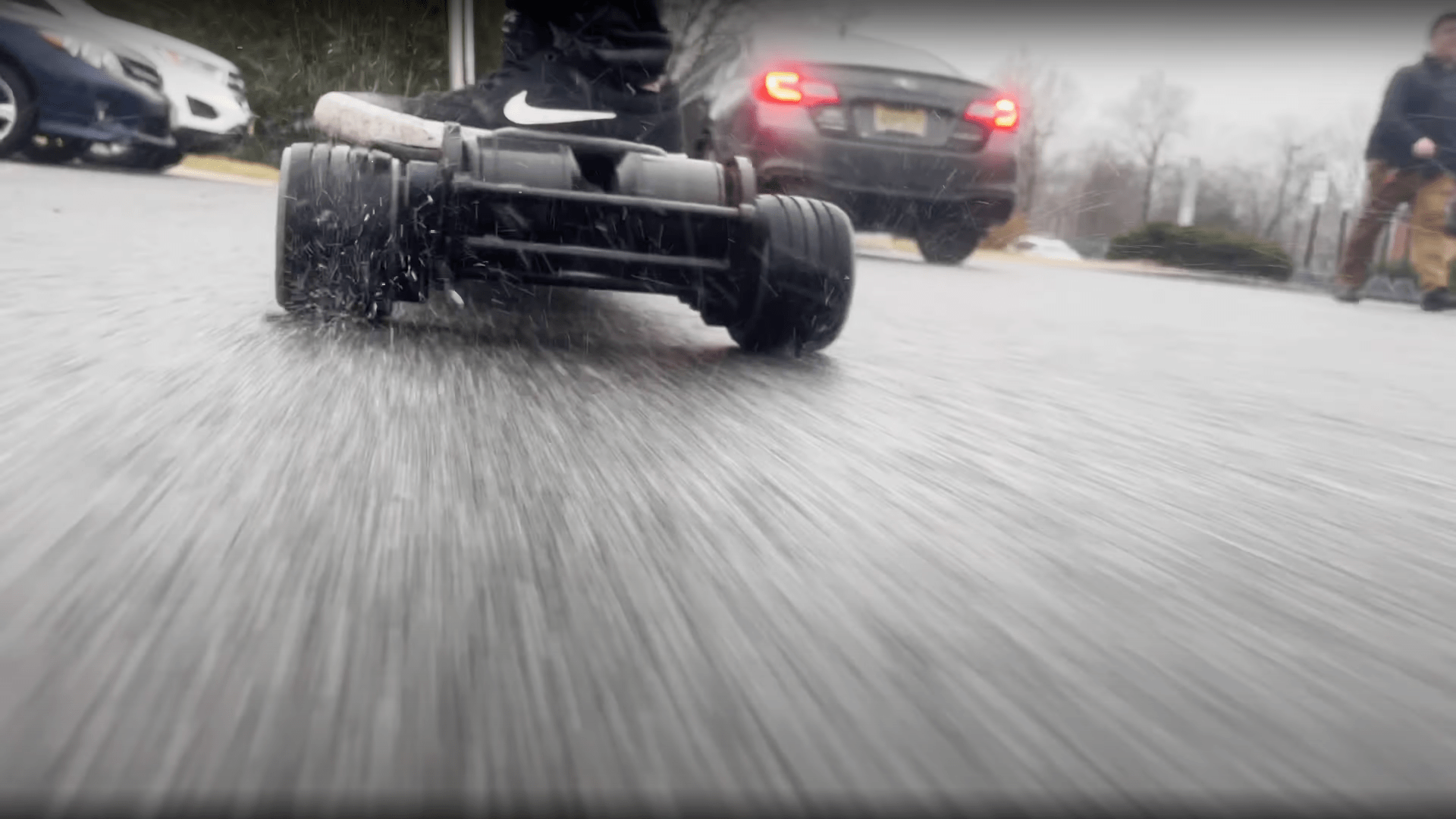Elektryczny longboard Exway X1 MAX został zaprojektowany w taki sposób żeby nie zwracać na siebie uwagi. Zintegrowana bateria oraz silniki sprawiają że cieżko dostrzec tutaj napęd elektryczny.
